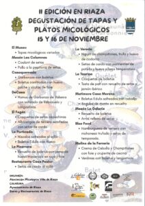 Sábado y domingo degustación de tapas y platos micológicos en los bares y restaurantes adheridos a estas jornadas (ver cartel).